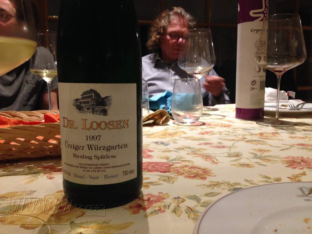 A propos - vín z Mosely... Mluvme konkrétně: Ryzlinků z Mosely. Není jiná odrůda, které tyto podmínky svědčí víc, než právě Ryzlinku rýnskému. Téměř každý hrozen zde vypěstovaný, sebraný a vylisovaný přísluší této královské odrůdě. A stejně tak i vinařství Dr. Loosen produkuje pouze ryzlinky. Ryzlinky v celé škále charakterů, jak jim je předávají jednotlivé viniční tratě, které stoupají do prudkých výšin nad několika vesničkami v okolí Bernkastelu. Několik z nich jsme s Erniem projeli, prochodili a osahali si je.